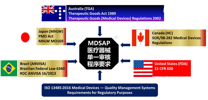 ? 服務(wù)簡介MDSAP醫(yī)療器械單一審核程序(Medical Device Single Audit Program)基于美國、加拿大、澳大利亞、巴西和日本等五個國家的醫(yī)療器械管理法規(guī)而構(gòu)建而成,在ISO 13485的基礎(chǔ)上,充分覆蓋美國FDA QSR820、巴西RDC16:2013,以及日本、加拿大、澳大利亞等國的醫(yī)療器械質(zhì)量體系法規(guī)要求,并兼容上述五國主管當(dāng)局關(guān)于醫(yī)療器械的其他適用要求,如器械注冊、售后監(jiān)督、不良事件報告、產(chǎn)品召回等,目前該項目已經(jīng)獲得美國食藥品監(jiān)督管理局FDA、加拿大衛(wèi)生局Health Canada、澳大利亞TGA、巴西衛(wèi)生局ANVISA和日本厚生勞動省MHLW的認(rèn)可。目前適用于五個參與國——美國、澳大利亞、巴西、加拿大、日本。